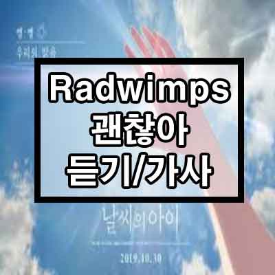 이번에 소개해드릴 곡은 Radwimps의 괜찮아(大丈夫)라는 곡인데요, 영화 ‘날씨의 아이’에서 엔딩 부분을 장식했던 곡으로 알려졌습니다.