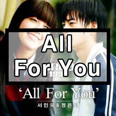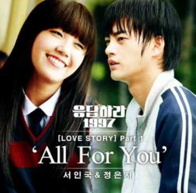 이번에 소개해드릴 곡은 서인국&정은지가 부른 All For You입니다. 원곡은 쿨이 불렀는데 서인국&정은지가 응답하라 1997 OST로 새롭게 부른 곡입니다. 응답하라 1977 방영 당시 굉장히 큰 인기를 끌었던 곡이며 최근까지도 노래방 인기 순위 100위에 랭크되어 있을 정도로 아직도 어느정도 인기가 있는 곡입니다. 특히 듀엣곡이기 때문에 커플 또는 남녀가 함께 불러도 좋은 노래죠. 한번 어떤 곡인지 가사, 뮤비와 함께 들어보도록 할까요?