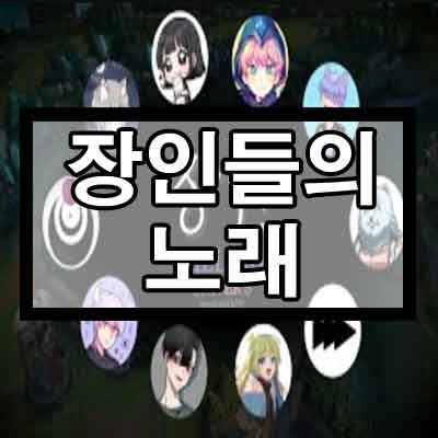 이번에 소개해드릴 곡은 장인들의 노래입니다. 킬링벌’s라는 유튜브 채널에서 여러 롤 유튜버, 그중에서도 한 챔피언만 깊게 파는 유튜버들(발젭, 캐인, 막내현진, 시간의숲, 새루, 병병병, 순당무, 헤이스트, 현솔, ㅇyㅇ, 만당, oyo)과 콜라보하여 만들어진 노래입니다. 아마 롤을 즐겨하거나 혹은 과거에 즐겨했던분, 또는 롤 관련 영상들을 자주 보는 분들이라면 아마 아는 사람이 한 두명은 있지 않을까 싶네요. 그러면 한번 같이 들어보도록 하겠습니다.