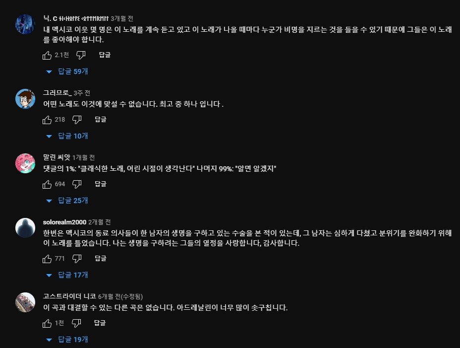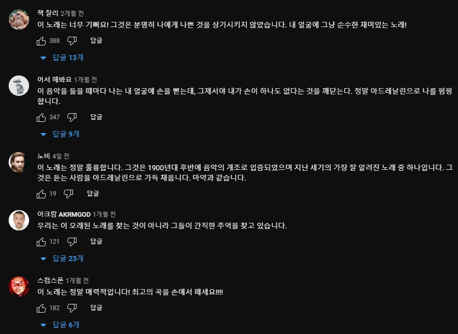 해당 곡에 달린 댓글들을 한국어로 번역하여 살펴보면 정말 각기 나라에서 좋게 평가하고 있는 것을 알 수 있습니다. 디스코틱하면서 펑키한 느낌이 제대로 살아있고, 거기에 헤어나올 수 없는 중독성까지 함께 합니다. 그러면 이번 포스팅은 여기서 마무리하도록 하고 다음번에는 또 다른 곡으로 다시 찾아오도록 하겠습니다. 🙂