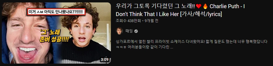 국내에서는 해외 노래를 각종 영상과 함께 영어 자막, 한글 자막을 다는 유튜버들에 의해 그 인기가 크게 올랐습니다. 찰리 푸스는 31세 미국의 싱어송라이터로 2015년 See You again이라는 엄청난 히트곡으로 빌보드에 등장했으며, 그가 버클리 음대의 전액 장학생이라는 배경이 밝혀지며 더더욱 인기를 끌게 되었습니다. 그러면 이번 포스팅은 여기서 마무리하도록 하고 다음번에는 또 다른 노래로 다시 찾아오도록 하겠습니다. 🙂